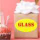 These shipping labels are oval shaped with GLASS in red over a yellow background. These shipping stickers are perfect for large or small business.