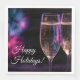 Beautiful glasses of champagne for New Year's and Christmas toasts against the backdrop of fireworks at midnight