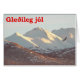A bald eagle flies near the snow-covered Chugach Range near Anchorage, AK. Icelandic text reading "Gleðileg jól" (Merry Christmas) appears in red.