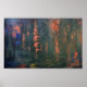 A luminous forest landscape where deep evergreen trees meet glowing copper reflections on still water. Glimmer captures the quiet beauty of light emerging through shadow, creating a dramatic yet calming statement piece for modern, rustic, or nature-inspired interiors.