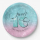 Glitter and Shine Sweet 16 Teal/Pink ID675 Paper Plate