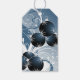 This gift tag has ornaments with an elegant sparkle and look of glitter. In various shades of blue, this tag features a design that says, 'Happy Holidays'.