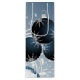 This wine gift bag has ornaments with an elegant sparkle and look of glitter. In various shades of blue, this bag features a design that says, 'Happy Holidays'.