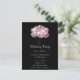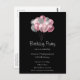 A party invitation postcard with an illustration of a bunch of balloons in pink and silver grey colours.