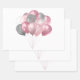 Wrapping paper sheets with an illustration of a bunch of balloons in pink and silver grey colours.