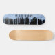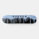 Personalised girly skateboard featuring blue faux glitter dripping against a black background. You can add your first name in bold letters across the glitter.