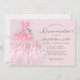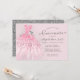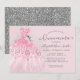 Modern Elegant Blush Pink Silver Grey Glitter Sparkle Floral Dress Gown Quinceanera 15th Birthday Invitation