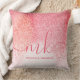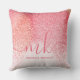 Glitter Blush Pink Rose Gold Monogrammed Script Cushion