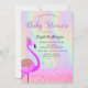 Glitter Bokeh, Flamingo, Holographic Baby Shower Invitation