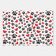 Glitter Cartoon Dog Paw Prints And Red Hearts Wrapping Paper Sheet