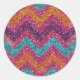 Glitter Chevron Pink Purple Orange Teal Classic Round Sticker