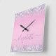 Glitter Confetti Personalised Pink Square Wall Clo Clock