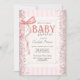 Glitter Confetti Pink Bow Striped Baby Shower Invitation