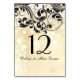 An elegant and classy table card featuring a black flourish of glittery curlicues on a faux metallic champagne coloured bokeh background. Click the CUSTOMIZE IT button to add your text and table numbers. Comes in 5 colours. Matching invitations, RSVPs, cocktail napkins & more available. For questions or requests for other items featuring this design, please contact: cheryl@cheryldanielsart.com. "Black Glitter Curlicue Swoop" by Cheryl Daniels © 2015.