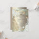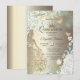 Gold glitter tiara, dress, butterflies, and green roses on a gold background. Invite guests to join you in celebrating this milestone with a design that reflects the magic and joy of your quinceañera.