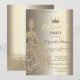 Gold glitter tiara, dress and diamonds on champagne background. Have fun at your retirement party with this elegant invitation. Invite your guests to raise a glass and join in on the fun with these festive invitations.