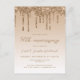 This trendy 50th wedding anniversary party invitation postcard features a sparkly gold faux glitter drip border and ombre background. The words "50th Anniversary" and the names of the couple appear in whimsical gold-colored script, with the rest of the customizable text in gold-colored sans serif font.