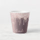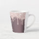 An elegant, girly and glam mug. Faux rose gold glitter drip, paint drip. Dark copper ombre background. Template for your name written with a hand lettered style script. Rose gold coloured letters.