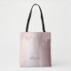 Elegant, girly and glamourous. Faux rose gold and pink glitter drip, paint drip. Chic rose gold ombre background. Insert your name, written with a modern hand lettered style script. Grey coloured letters.