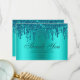 Glitter Drip Teal Green Baby Feet Thank You Card