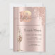Elegant rose gold glitter drips, and elegant champagne glass on a rose gold background.