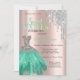 Glitter Drips,Green Dress Rose Gold Sweet 16 Invitation