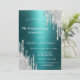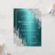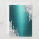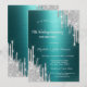 A modern, chic, and glamourous with silver glitter drips on a green metallic background.