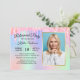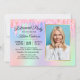 The design is so elegant and modern that features a Blue floral and a Golden accent style with Your picture on the right side along with a handwritten script design. Also, there is a chic frame of beads where you can add your photo to make the invitation extra special and customisable.