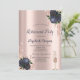 Elegant glitter drips, and navy blue flowers on a rose gold background.