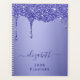 Monogrammed elegant and girly sparkly planner featuring purple faux glitter dripping from the top against a purple background. You can add your first name in a stylish trendy purple script with swashes, title and year.