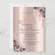 Glitter Drips Rose Gold Floral Sweet 16 Invitation