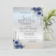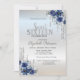 Glitter Drips Silver Blue Flowers Sweet 16 Invitation