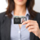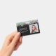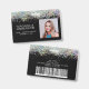 A glitter employee ID badge design that can be customised with your company name and a barcode.