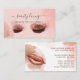 Stunning and beautiful makeup artist theme business card. Our design features our own original closed eyes and lashes with faux glitter eye shadow. Beautiful blush pink makeup powder elements are added to the background design to create a luxury and glamour look. Customise with your Business name. **Note: make sure to only replace the middle text so that the extended swashes remain on the ends of the letters** The reverse side features our original faux glitter pink lips and makeup powder design elements. Customise with your contact information. All illustrations are hand-drawn original artwork by Moodthology Papery.