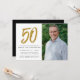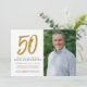 Celebrate 50 years with this white, black and faux gold glitter invitation featuring a large stylised 50 along with a photo of the guest or guests of honour. This works well for a 50th birthday or a 50th anniversary party.
