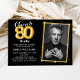 Glitter Gold Black 80th Birthday Photo Party Invitation