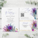 Glitter Gold Blue Purple Peacock Plume QR CODE RSVP Card