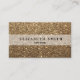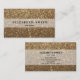 These elegant business cards feature a gold glitter. Your name appears in trendy handwritten script typography. There is also room to include your social media information on the back.