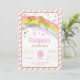 Start off your little girl's 8th birthday party with a bang with this pretty pink and gold unicorn personalised invitation! Featuring a faux gold glitter unicorn and a colourful rainbow. Personalise this unicorn birthday invitation with your child's name, age and party details easily and quickly, simply press the customise it button to further re-arrange and format the style and placement of the text. A pretty pink stripes backside of invite design included!