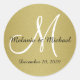 A personalised monogrammed wedding envelope seal in shimmery gold adds that extra touch of elegance to your wedding invitation mailing. Glitter Gold Wedding Custom Monogram Stickers. Design by Elke Clarke ©. Printed gold glitter photo effect artistically rendered. Custom monogram stickers are perfect for your envelope seal on wedding invitation envelopes. The stylish monogram stickers will look great on your wedding favours or wedding sweet treat bags or wedding cake boxes. Also great for party favours for wedding showers, wedding anniversary celebrations, engagement showers, thank you cards and more. An exclusive and special gold glitter design. Personalise with your bride and groom names, monogram initial and wedding date. Then choose from a variety of shapes and sizes. Customisable Envelope Seal Date, First Names and Initial Monogram Sticker.