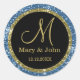 A Personalised Monogrammed Wedding envelope seal in a shimmery blue and gold frame around black adds the right touch of elegance to your wedding mail.The custom Monogram Stickers can be used for your other wedding related mails too.The stylish Monogrammed Stickers look great as seals on party favours,thank you cards,gifts,etc .The glitter gold seal design looks exclusive and special.The gold glitter is only an effect artistically rendered.The text colour,font and size can be edited using the 'Customise it' option. Need help?Just contact me.