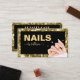 Black and Gold Glitter Nail Salon Manicurist Modern Loyalty Card with woman manicured hand. Edit nail artist name, social profile and phone number etc.
