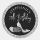 Glitter High Heel Any Birthday Silver Classic Round Sticker