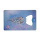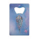 This credit card bottle opener or bar key has a watercolor hand drawn sweet jelly fish with turquoise an pink glitter as well as a pink glitter star fish.