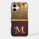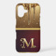 Elegant gold monogram letter set against a rich burgundy background with dripping liquid gold and glitter accents. Luxurious, glamorous texture ideal for branding, invitations, holiday or premium product design.