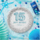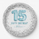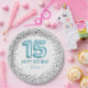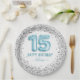 Glitter Light Blue Happy 15th Birthday Paper Plate