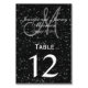This black and white wedding table number card looks both elegant and sophisticated. The background has just a touch of a glitter looks and looks like stars, helping to make this card even more special. Customise with your bride and groom names to make a special card that can also be used as a keepsake. When you order this card, make sure that you "make" each number individually then add them to your cart. Any discounts such as the bulk discount will then be applied. Card designed by Amelia Carrie. Have a wonderful day! (Note: This card contains no messy glitter and is a graphic reproduction print.) See more designs at GlitterInvitations.com or Zazzle.com/GlitterInvitations
