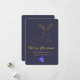 Elegant dark slate blue coloured flat style Christmas greeting card, with a gold glitter looking stylised deer, on the top half of the card. Gold glitter look graphic text reading Merry Christmas, decorates the bottom half of the card Tan custom text ready to personalise with your companies name and a logo area is ready to replace with your companies logo.