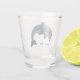 This glass shot glass has a glittery jumping dolphin who is dark blue and white with a black and white swirl eye. Customise your text with the template.