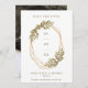 An elegant rustic wedding save the date announcement featuring a faux gold glitter geometric frame with watercolor black olives and green leaves. Personalise with your details in green font and add your photo to the reverse.